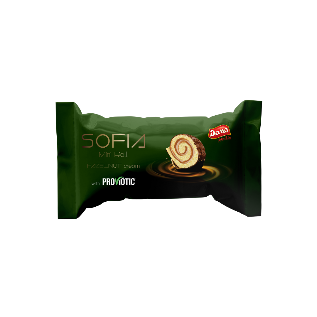 SOFIA to mini rolada z nadzieniem truskawkowym, z orzechów laskowych lub orzechów ziemnych w polewie kakaowej. Mini rolada to wyjątkowy produkt wzbogacony o probiotyczny szczep bakterii kwasu mlekowego LactobacillusplantarumGLP3. Bakterie te są znane ze swoich korzystnych właściwości zdrowotnych, takich jak wspieranie układu odpornościowego oraz działanie przeciwbakteryjne. Jest to propozycja marki Doma z Bułgarii.